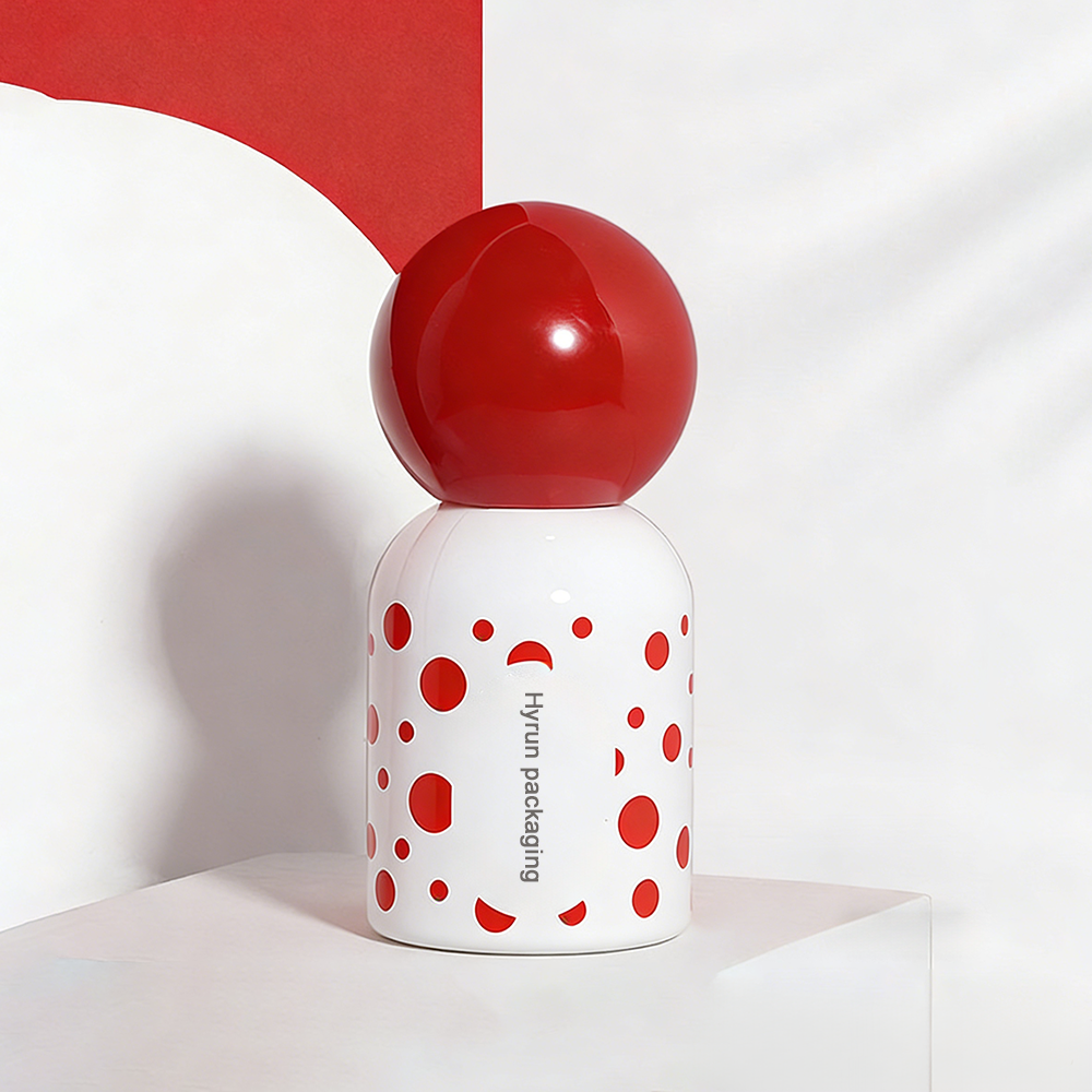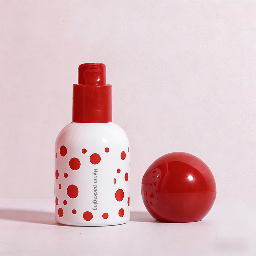Round Glass Essence Bottle with Red Polka Dot | 30ml 50ml Serum & Foundation Packaging | Hyrun