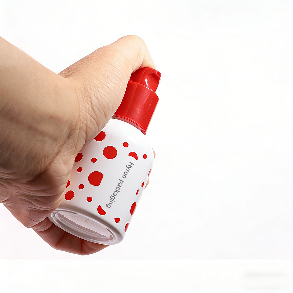 In the high-stakes world of premium skincare, the initial physical interaction between a consumer and the product defines the brand’s perceived value. Our Glass Essence Bottle series, available in 30ml and 50ml capacities, is designed to command attention through a bold, high-contrast red polka dot aesthetic paired with a substantial, luxury-weight glass base. The ergonomic spherical overcap and high-saturation red pump actuator provide a satisfying tactile click and seamless operation, signaling clinical reliability to the end user. This playful yet sophisticated visual identity, coupled with the cool-touch glass surface, creates an immediate emotional connection, ensuring your serum or foundation stands out in a crowded digital and physical marketplace.