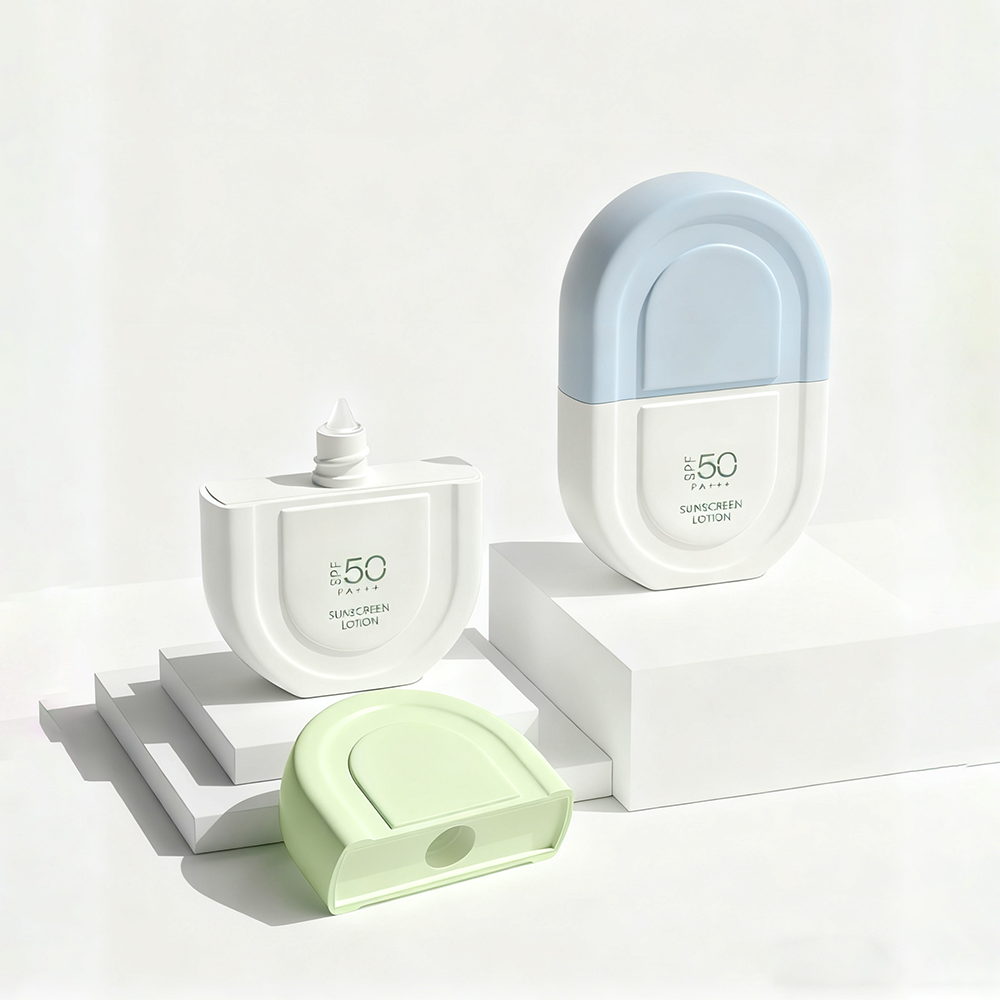 In the evolving landscape of sun care, packaging is no longer just a vessel; it is a statement of brand identity and functional sophistication. Our latest Sun Lotion Bottles feature a unique, arch-inspired architectural silhouette that breaks away from traditional cylindrical designs. This series is crafted for premium sun care brands that prioritize a minimalist, “clean beauty” aesthetic. The dual-tone matte finish, characterized by soft pastel blues, greens, and pristine whites, offers a cooling visual effect that perfectly complements high-SPF formulations designed for heat-intense environments.